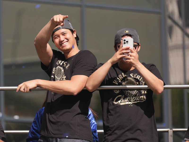 As buses slowly drove the back-to-back champs through downtown en route to Dodger Stadium, the team’s resident two-way star was looking toward the next title.