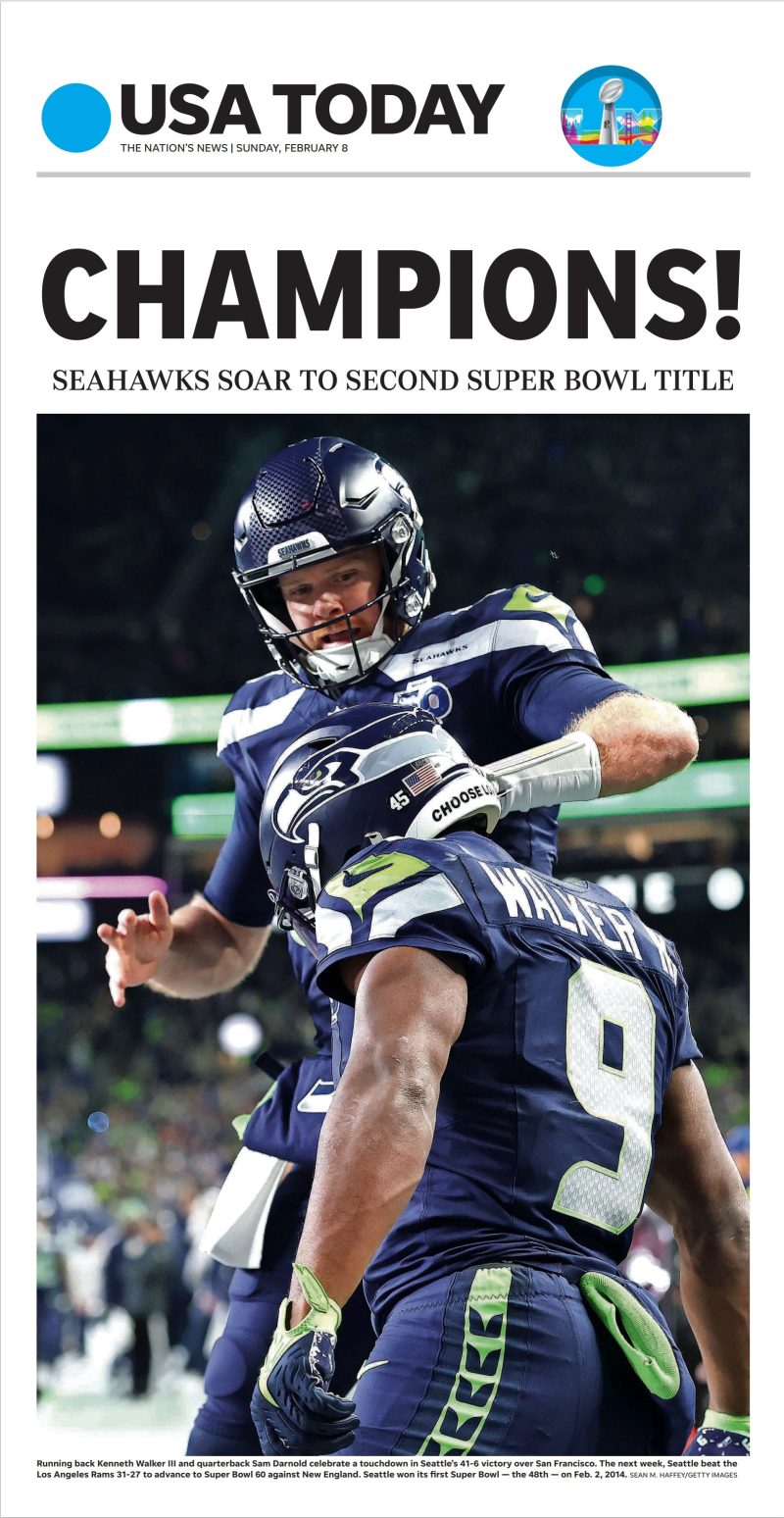 You can celebrate the glory of the Seahawks’ return to the mountaintop with page prints from USA TODAY Sports. These are keepsakes that will last a lifetime, are a must for longtime and new Seahawks fans, and make the perfect gift for the Seahawks fanatic in your life.