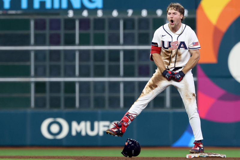 Just like that, Team USA’s offense went off. Pete Crow-Armstrong doubled. Schwarber homered. Alex Bregman doubled. Henderson hit a two-run double.